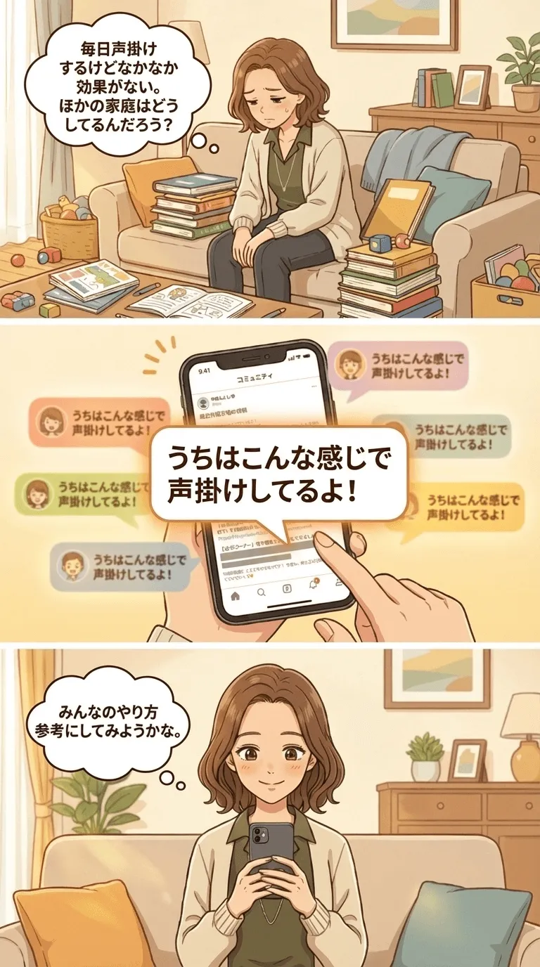 親自身の余裕悩みを共有することで心が軽くなり、子どもと向き合う余裕が少しずつ生まれてきました。